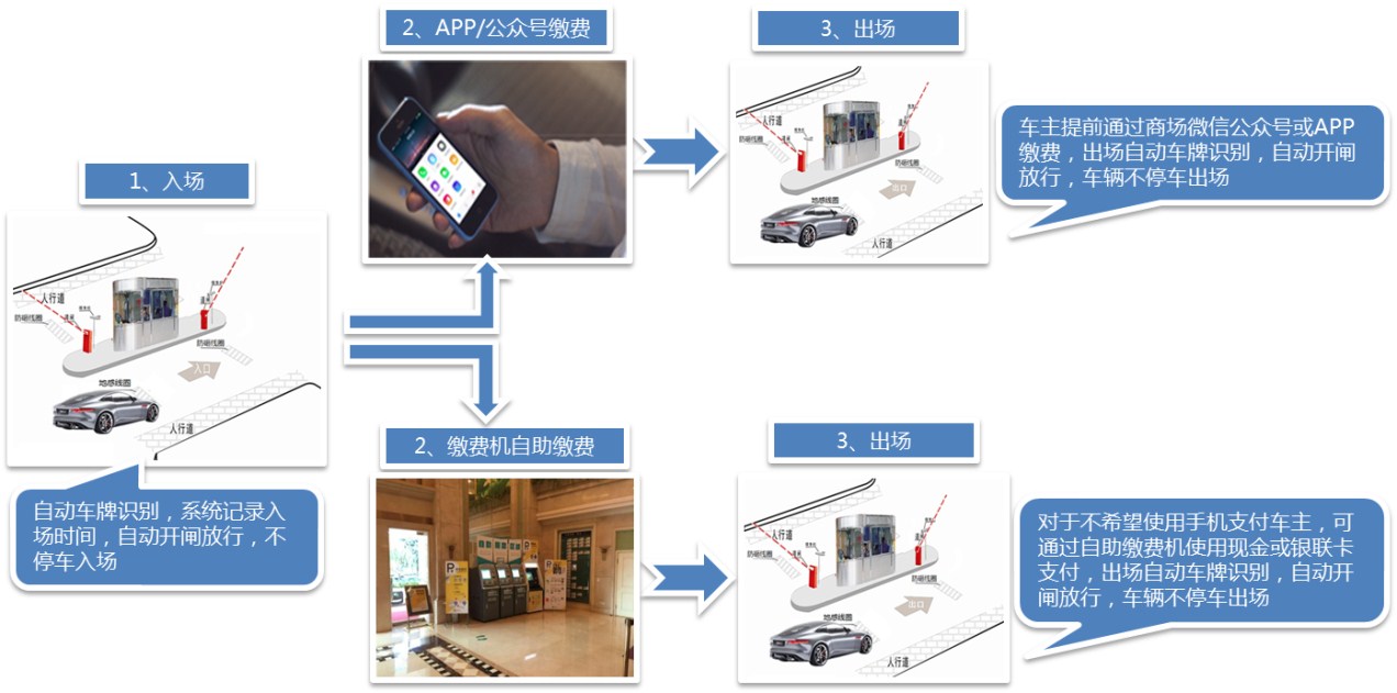 臨時(shí)車(chē)輛車(chē)牌識(shí)別不停車(chē)進(jìn)場(chǎng),手機(jī)/自助繳費(fèi)機(jī)自助繳費(fèi)后不停車(chē)出場(chǎng),給臨時(shí)車(chē)輛帶來(lái)極佳的停車(chē)體驗(yàn)。